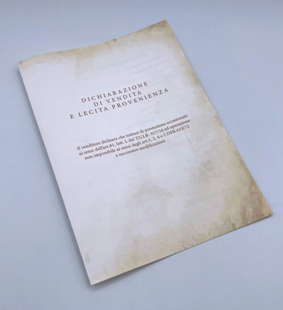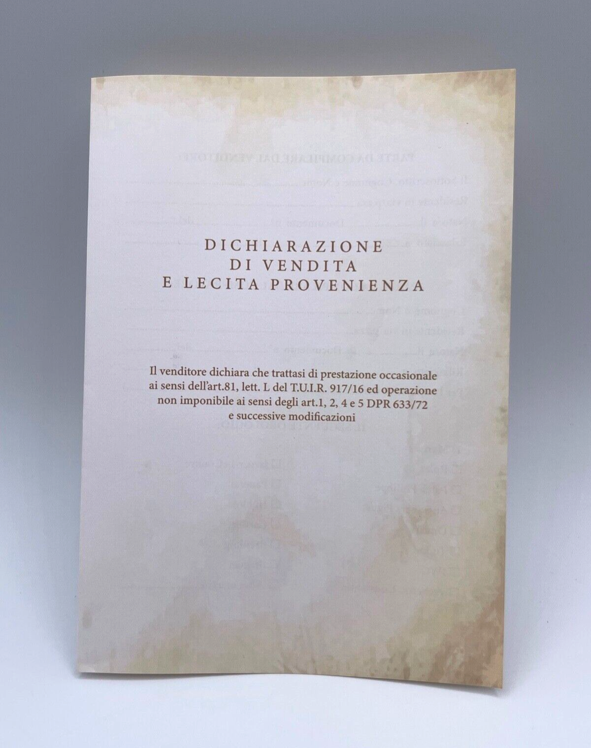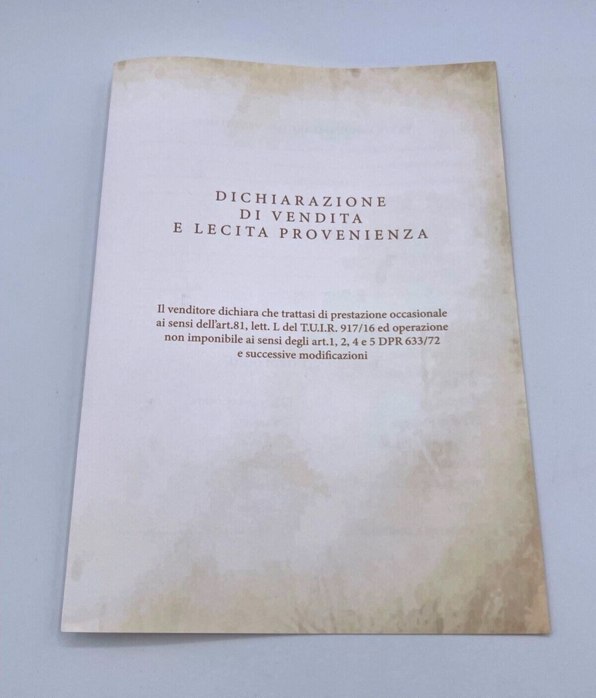 Vendo dichiarazione di lecita provenienza per orologi di lusso come Rolex, Patek Philippe, Audemars Piguet, Omega, Tudor, IWC, Vacheron Constantin, Jaeger LeCoultre, Panerai, Hublot, Cartier, Breitling, Breguet, ecc..