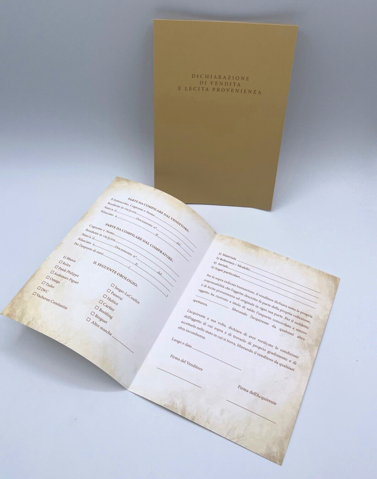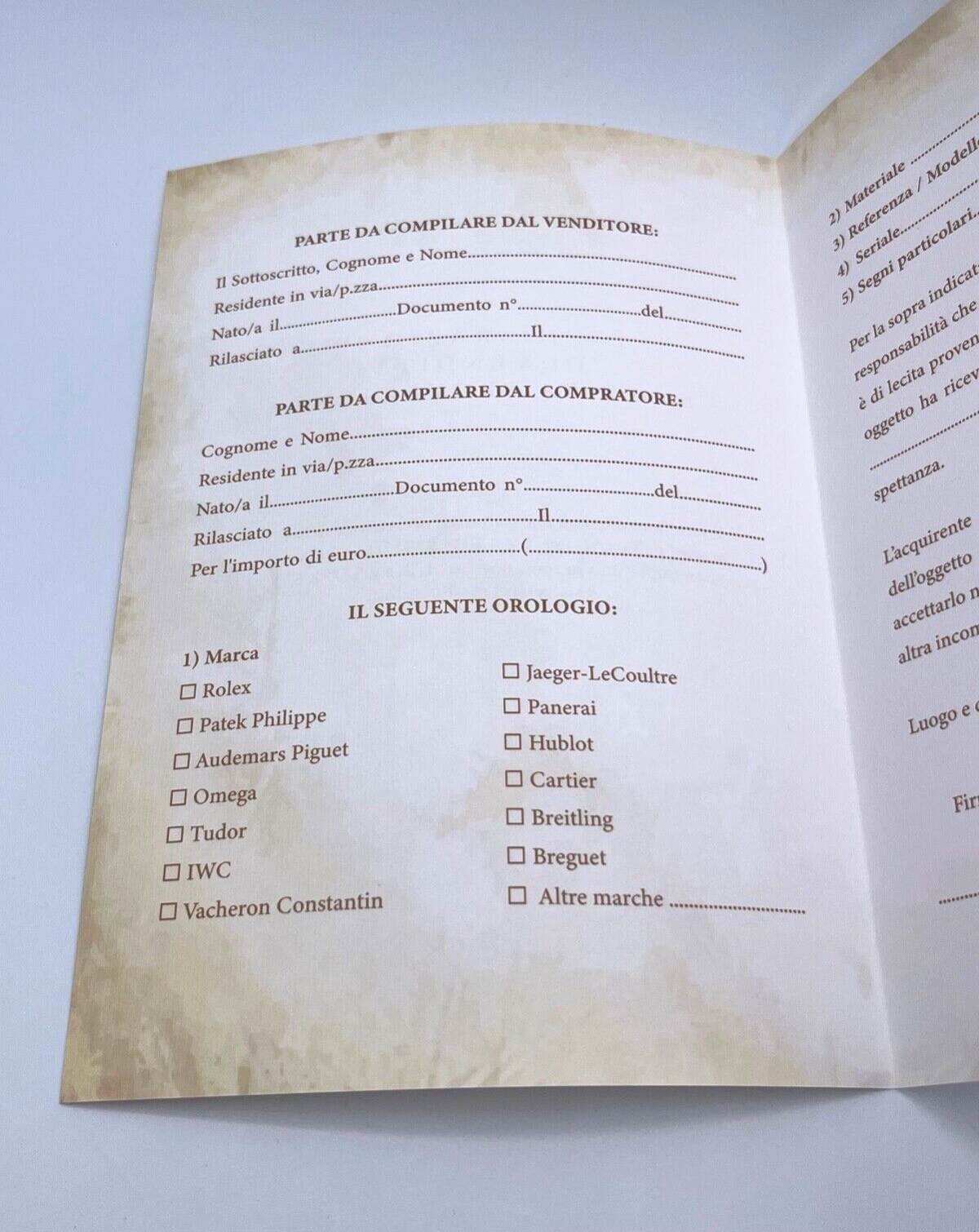 Al suo interno sono presenti tutti gli elementi legali necessari per vendere in sicurezza il proprio orologio.